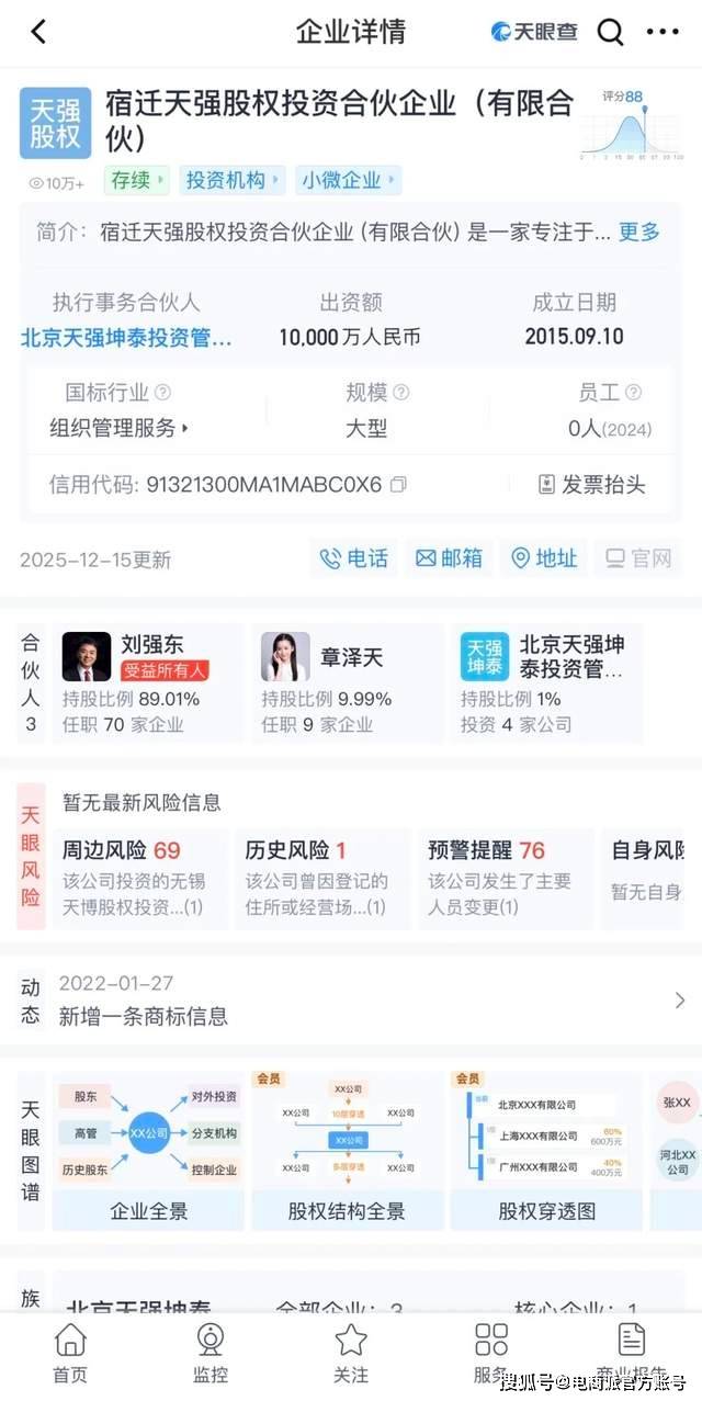 2015年婚礼前夕,她和刘强东各取名字中一个字,成立了宿迁天强股权投资合伙企业,注册资本1个亿。从那时起,投资就成了她的另一份事业。