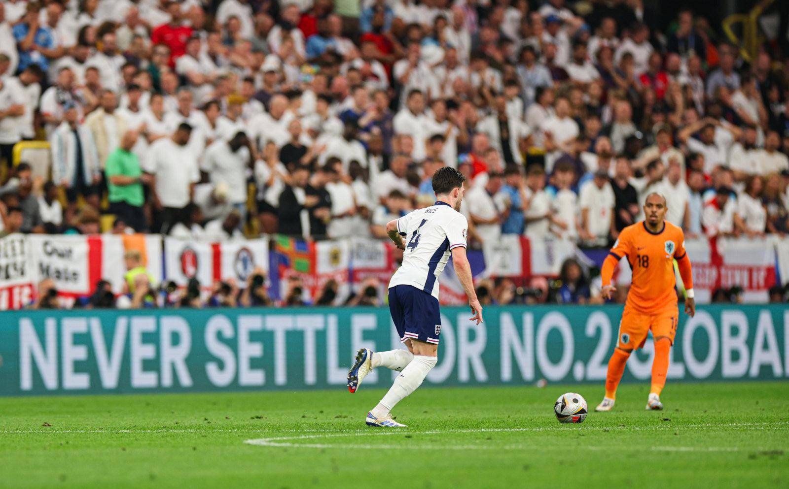 足球魅力源自游戏过程之意想不到。尽管此前荷兰队略胜一筹,但英格兰队伍依然坚守信仰全心投入。赛事进入关键时刻,每一次的控制权争夺皆动人心魄;而队员们的顽强拼搏则更进一步地激发了现场观众的激情。