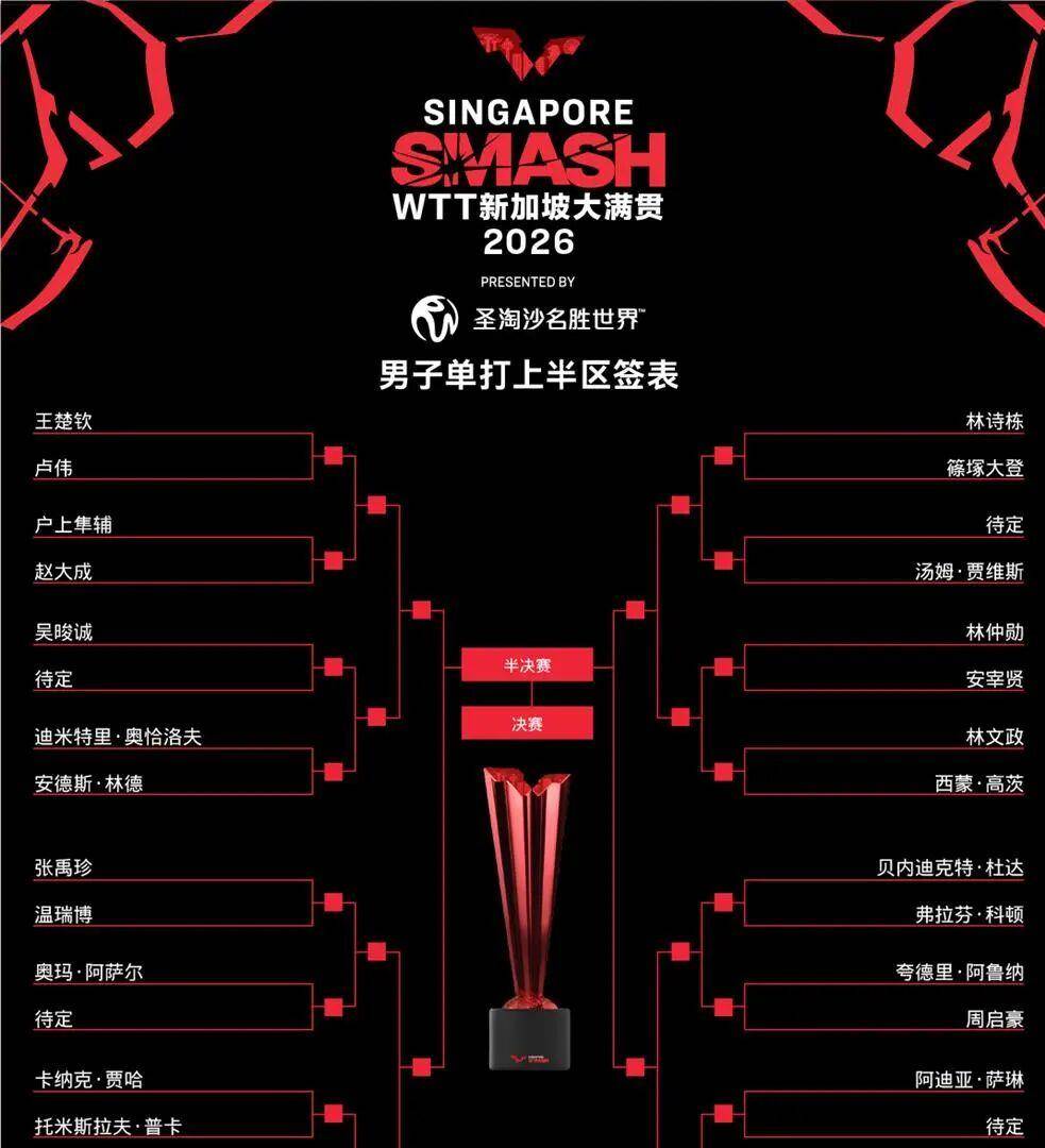 同在上半区的还有卫冕冠军林诗栋,作为三号种子,他首轮就要迎战日本选手篠塚大登。