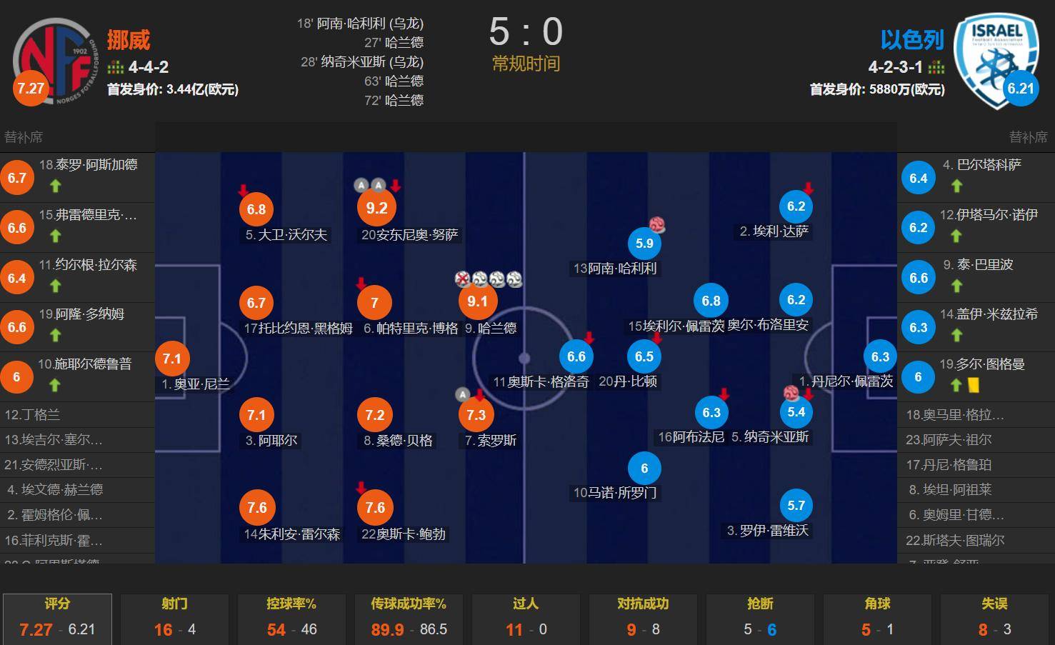 五大联赛,五大联赛直播,英超直播,西甲赛程,意甲比分,德甲预测,法甲分析/全网最全五大联赛资讯平台,涵盖英超、西甲、德甲、意甲、法甲直播入口、赛程积分、实时比分与专家预测分析,手机电脑均可访问!在欧洲区世界杯预选赛I组的第七轮里,挪威在主场以5比0大胜以色列,展现出惊人的实力提升。尽管哈兰德两次主罚失点,但他凭借超凡的进球能力还是完成了连续两场的帽子戏法,在两场世预赛中一共攻入8球,这也让C罗在世预赛历史射手榜上的地位显得不再稳固。