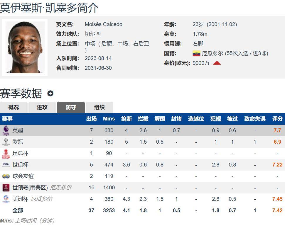 关于转会背景也很有意思。2023年夏窗,切尔西以约1.16亿欧元的天价从布莱顿签下凯塞多,很多人认为这是切尔西为未来十年锁定中场核心的重要举措。如今的他,已经被广泛视为切尔西后腰位置的长期保障。