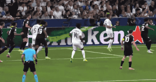 整个上半场,皇马完成了14次射门,比分却是0-0。下半场开始只有5分钟,尤文图斯获得绝佳机会。