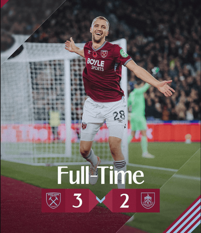 换帅后西汉姆成绩并没有立竿见影,努诺带队前4轮不胜,但最近两轮3-1力克纽卡、3-2逆转伯恩利,拿到宝贵两连胜。