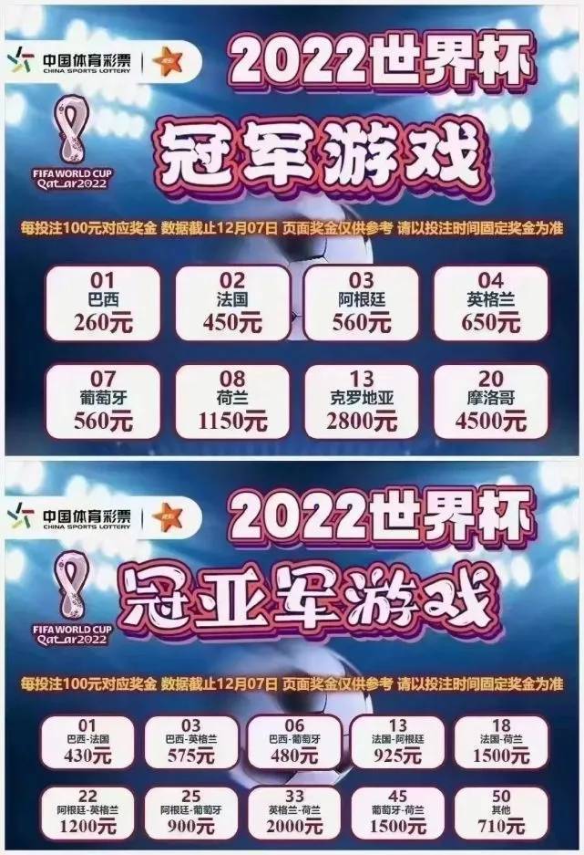 而中国体彩也公布了最新的冠军赔率以及决赛对阵赔率,很显然,巴西还是更被看好。
