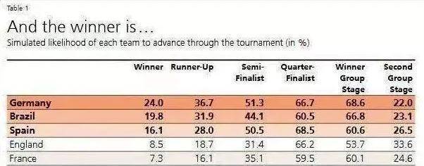 而瑞银集团当年发布《投资与足球:2018俄罗斯世界杯》,通过1万次数据模拟验算,得出冠军是德国队,法国获第5名,结果也被打脸。