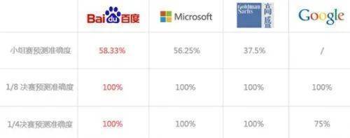 2014年世界杯,谷歌、微软还有中国的百度等公司,就通过人工智能对世界杯进行了预测。其中百度大数据的准确率约67%,尤其是淘汰赛环节以15中15的逆天成绩,使得准确率飙升至94%。